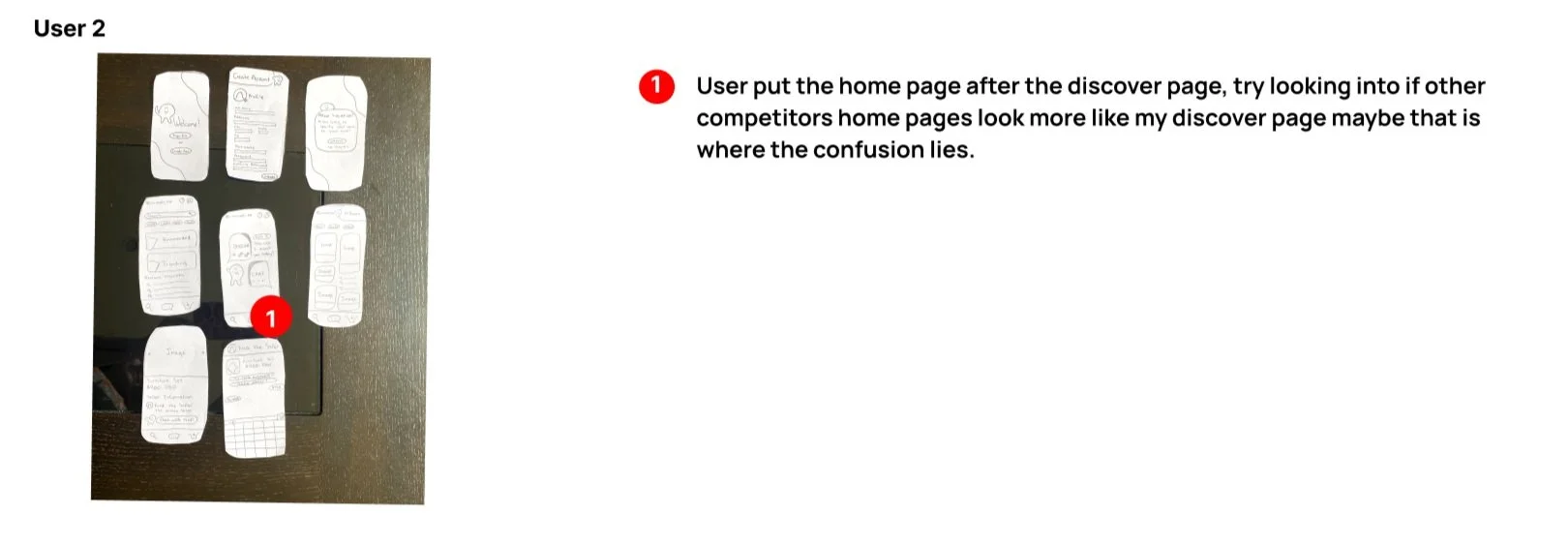 The initial prototype sketches were taken to the user to discover how they might set up the task flow based on the sketches they were given. The results are as shown below.
