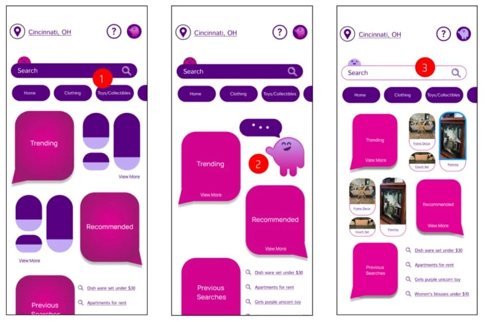To begin, research was conducted to discover the best format for different attributes of the website where design adjustment was needed. Looking at details in Pinterest, Facebook, and Mercari.