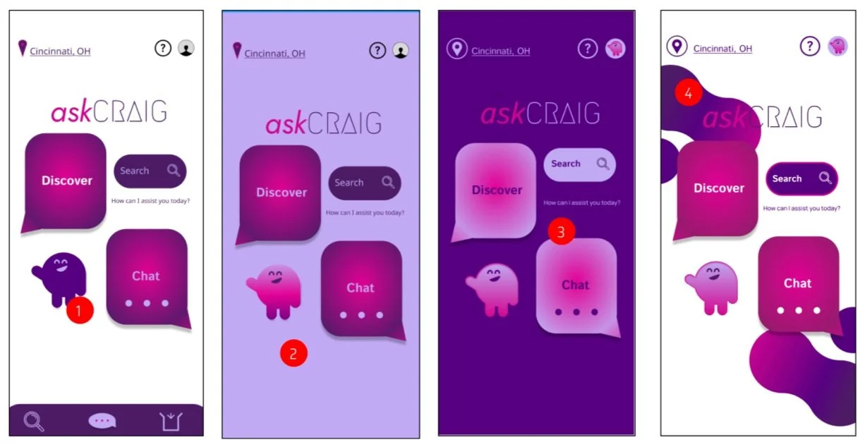 A mood board was created and a style tile was created from that mood board. The colors were there to reflect the ai/high tech feel of the app re-design.