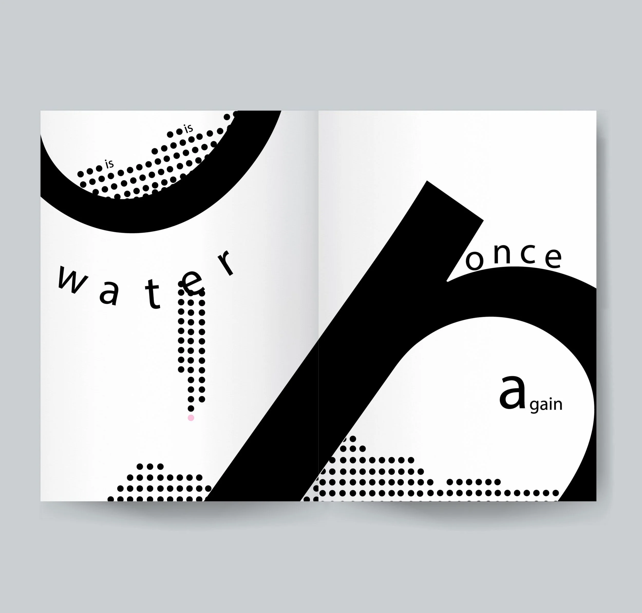 For this piece of work, the premise was to pick a haiku poem and create a booklet that represents it in a non literal way. The goal was to not illustrate the poem representing the imagery but to show the imagery in a way that was subjective to who was viewing the booklet. This piece follows the pink accent of the circle to represent the metaphor that the snow is just like the pink cherry blossoms represented on the second spread.